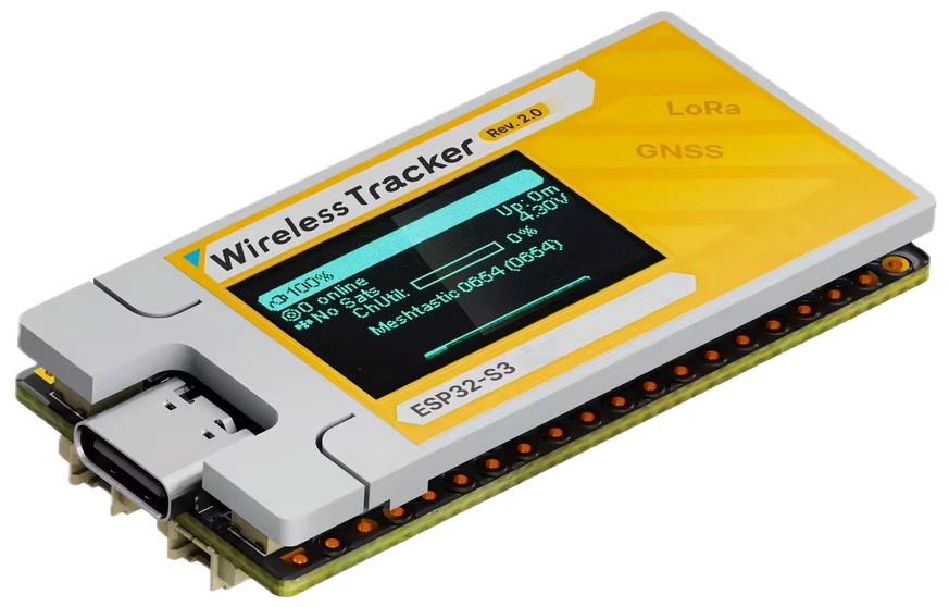 Nachfolger des Wireless Tracker V1.1 mit deutlich verbesserter Sendeleistung (28 dBm, KCT8103L PA/LNA) und kompakterem LDS-Antennen-Design für GNSS und 2,4 GHz. ESP32-S3FN8 + SX1262 + UC6580 GNSS (GPS/GLONASS/BeiDou/Galileo/NAVIC/QZSS). 0,96 TFT-Farbdisplay (160×80 px). Solar- und LiPo-Anschluss. MeshCore Community-Firmware ab v1.13.0, in v1.14.1 auf KCT8103L migriert.
