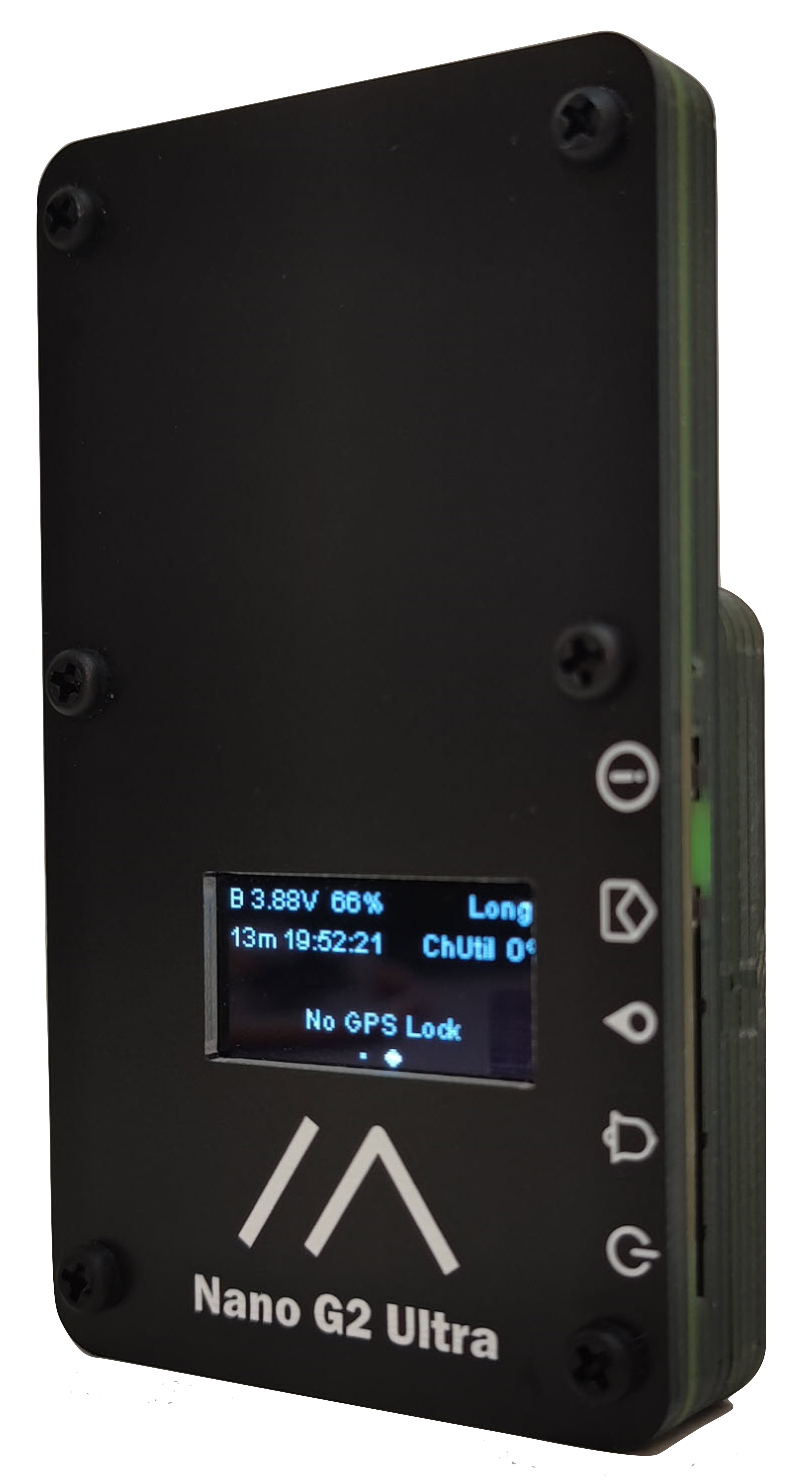 Ultra-portables nRF52840-Gerät von Unit Engineering (B&Q Consulting) im Taschenformat. Integrierte Breitband-LoRa-Antenne (815–940 MHz), ATGM336H-5N GPS-Modul (GPS/GLONASS/BeiDou/QZSS), 1,3'' OLED-Display, Bluetooth 5.4. Akkulaufzeit ca. 3,5 Tage (1200 mAh). Kein WLAN (bewusst für Energieeffizienz weggelassen). Physikalischer Ein/Aus-Schalter, LED-Nachrichtenanzeige, Buzzer. Community-Firmware: Companion BLE/USB, Repeater, Room Server.